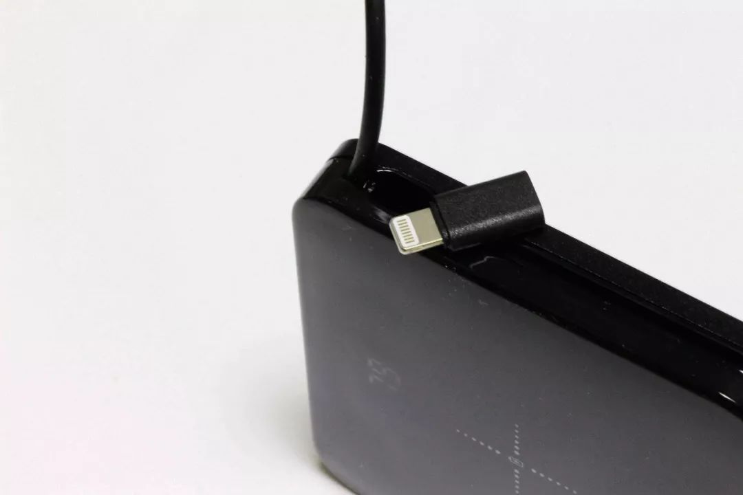 南卡这款充电宝还有一个存放接口的空间,这个孔内可以放置一个苹果充电转接口,这样有利于携带出门,随时可以拿出来使用,非常人性化的设计。如果Type-C的接口也设计一个同样的位置就更好了。