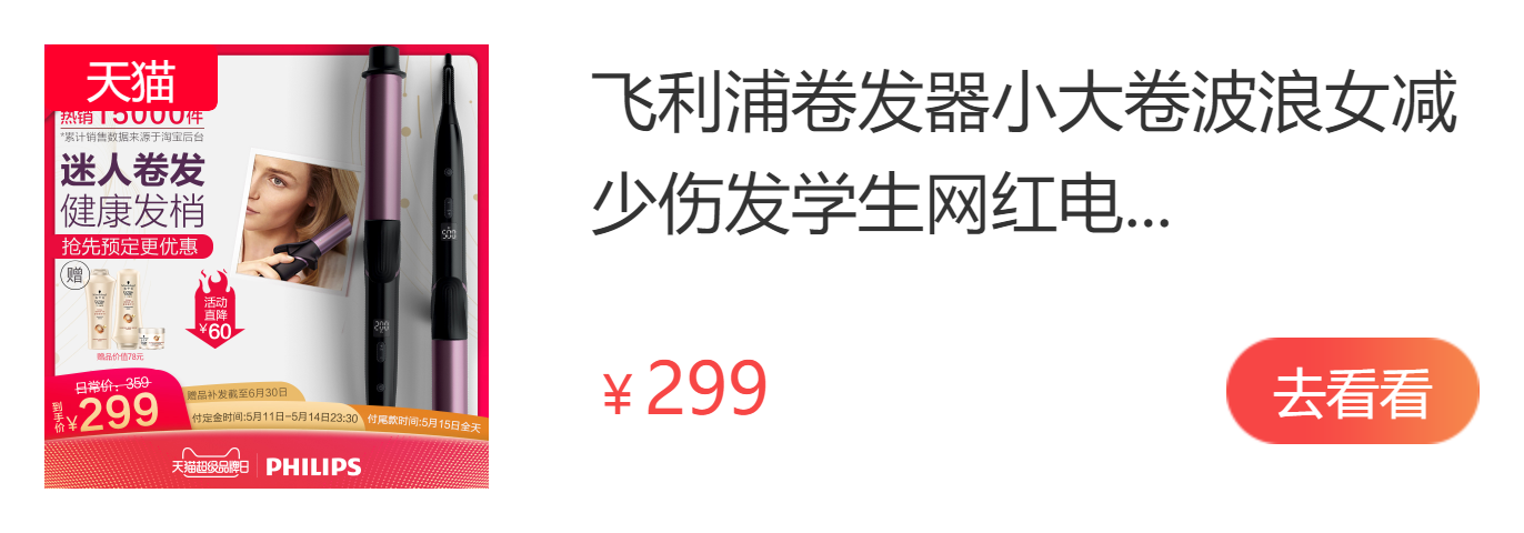 在Salonia和飞利浦纠结了一下,就入手了飞利浦,感觉毕竟是一个品牌,质量应该有点保障的,也是颜值很ok的一款,原价好像299,这几天年中庆活动269,没忍住就买了,这个说什么负离子,比较保护头发,其实我觉得可能并没什么卵用,因为都伤头发,但是比起50一根的应该会好那么一丢丢,不过确实这个夹完头发不会很燥。