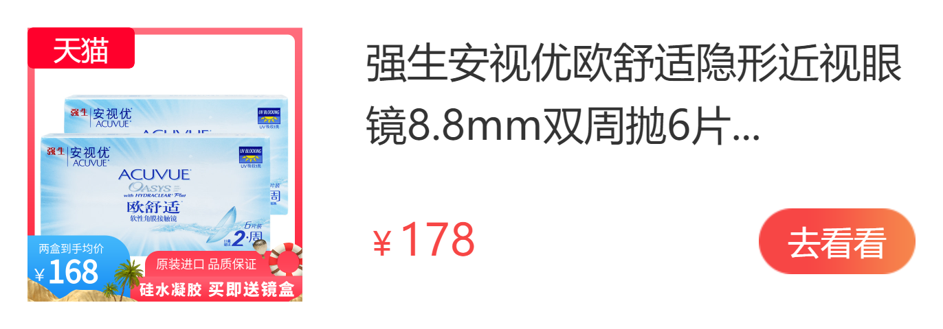 上大学的时候,曾经因为佩戴隐形眼镜不当导致角膜溃疡,那时候连续一周去医院洗眼+用纱布包眼,足足一个星期才康复,自那次后我选隐形眼镜都特别特别特别谨慎!强生这个牌子大家都灰常熟悉,所以它的日抛自然让我觉得更加靠谱安心。