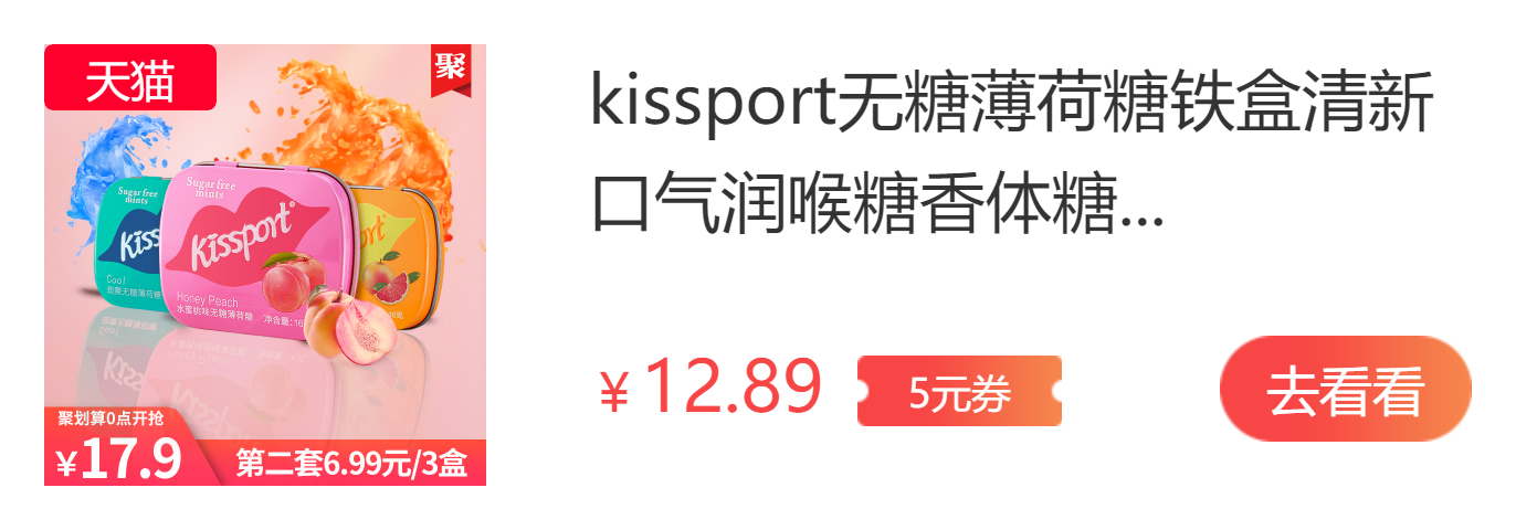 第1款,kissport口香糖,小编觉得,口香糖是个好东西,在咀嚼口香糖的时候,不仅可以满足我们对食物的需求,还不用担心会摄入过多的热量,另外,口香糖还能起到清新口气的作用,吃起来也很文雅。