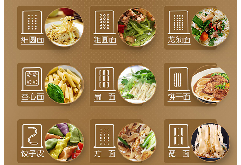 面条机和面出面速度都挺快的,做出的面非常劲道,而且剩面很少,和人工手擀的味道一样好吃。拆开后清洗也比较容易,使用起来很方便。面条机自带很多款模具,细面,宽面,饺子皮等等都能做。