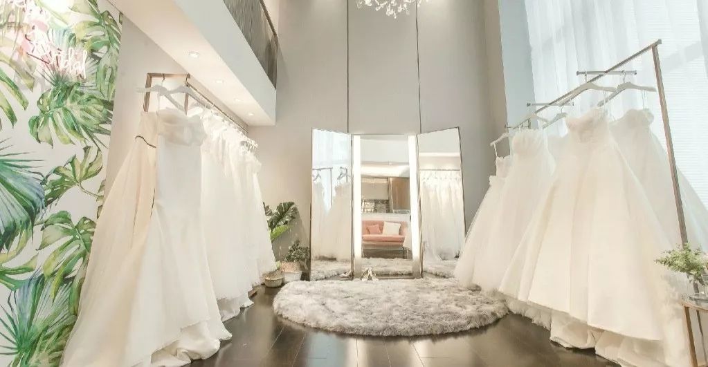 芥茉新娘的体验店一进门,就能感觉到满满的少女气息扑面而来,淡粉色的墙面,丝绒的座椅... ...连拖鞋都是时髦的淡粉色。