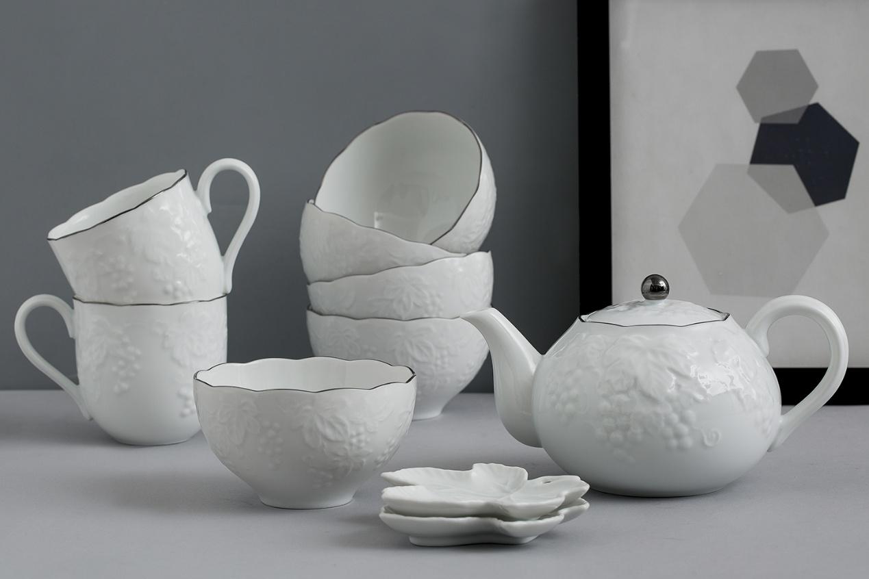 比如与日本著名婚纱设计师桂由美合作,推出的浮雕美浓烧系列: