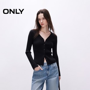 ONLY2025冬季新款简约百搭V领修身显瘦开衫打底衫针织衫女