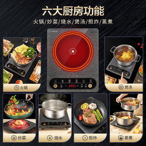 美的铂钻电磁炉大火力爆炒家用款火锅专用炒菜锅一体全套官方正品