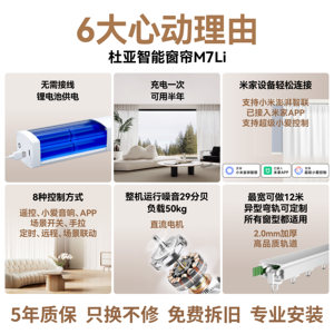 - 全球知名的智能家居及门窗电机制造商。杜亚(DOOYA)品牌是全球领先的门窗电机制造商,杜亚(DOOYA)坚持以“持续研发、忠于品质、服务顾客”为质量方针,凭着创新的产品和优质的服务享誉全球。体验明星产品,尊享优质服务。专卖店将产品与服务完美结合,为消费者提供最直观的产品展示和高效的线下服务。杜亚(DOOYA)电动窗帘采用进口ATMEL芯片,外壳使用航空铝合金材质,轻筒机身可承重50公斤,厚重窗帘不在话下;除了遥控器正常操作外,此款支持天猫精灵或小爱同学进行语音控制,以及进行定时开关等智能体验。搭配天猫精灵/米家APP、实现手机控制。