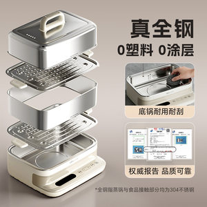 小熊电蒸锅多功能蒸煮一体锅不锈钢大容量早餐机蒸锅家用2026新款