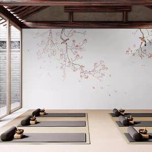 壁画定制古典玉兰花鸟电视背景墙纸新中式客厅卧室老人房壁纸墙布