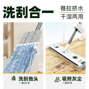 美丽雅免手洗平板拖把干湿两用懒人拖把家用厨房一拖布净拖地神器