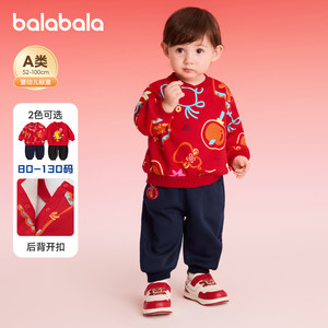 巴拉巴拉balaOne婴儿套装宝宝睡衣男女童长袖家居服2025新款夹棉